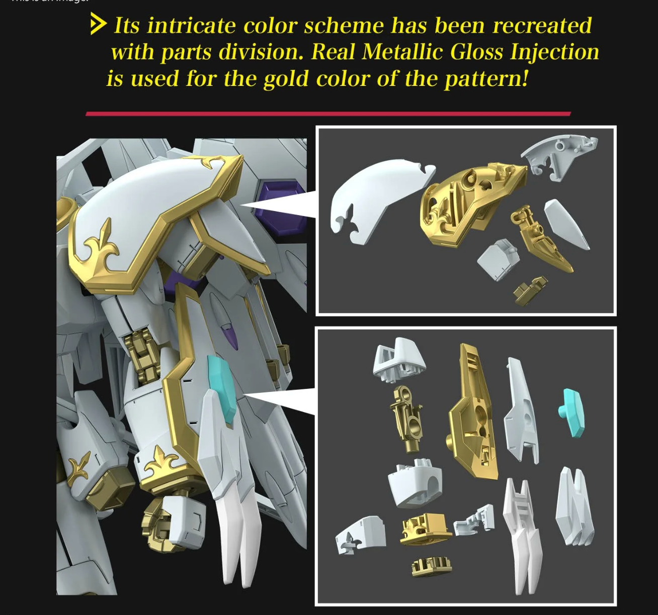 - **Real Metallic Gloss Injection**: The kit utilizes a material with enhanced metallic sheen for the golden engravings across the armor, providing a premium look and feel.
