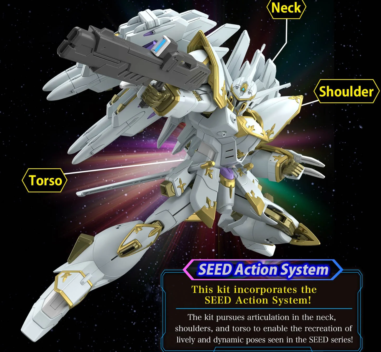 - **SEED Action System**: Incorporates the specialized internal structure designed for dynamic posing, typical of the "Mobile Suit Gundam SEED" series.