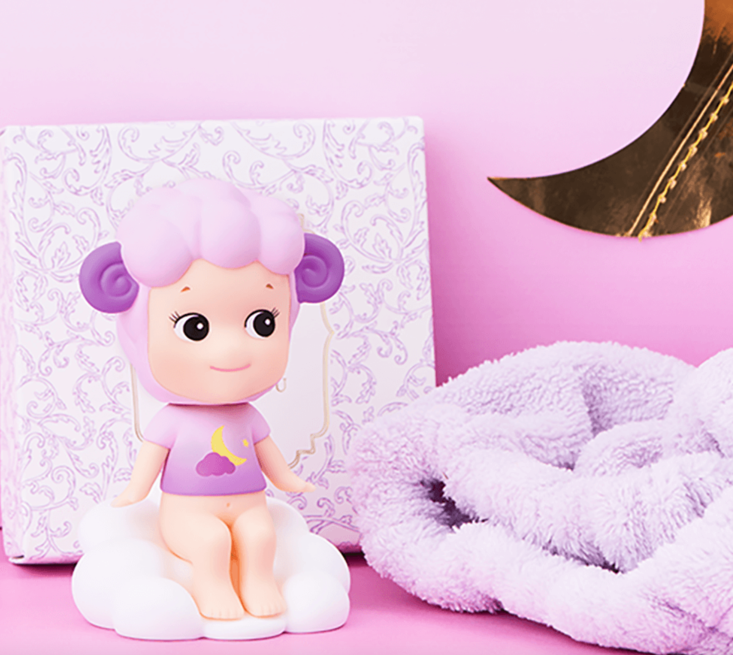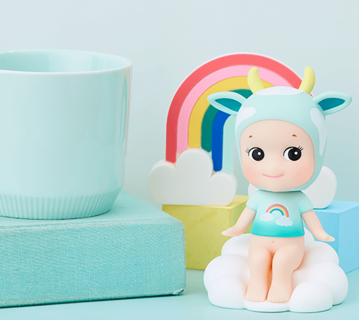 You feel calm as you look at Sonny Angel, who gently watches from above the clouds.